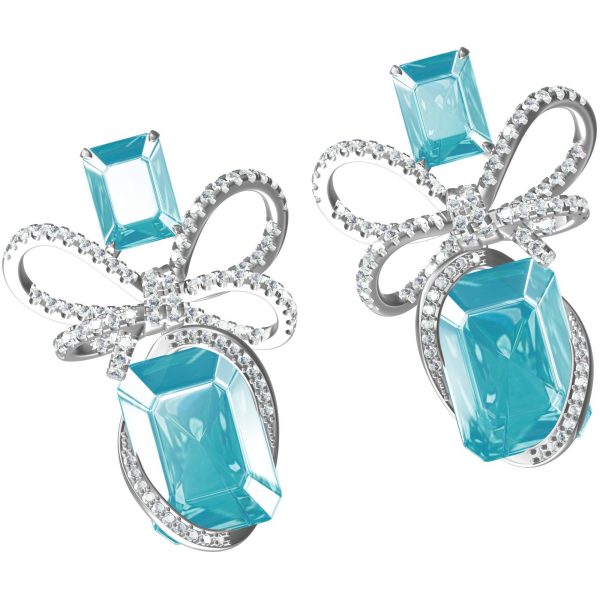 14K White Gold Beautiful Aquamarine Bow Earring Lab Diamonds Women Stud Earrings, set with 1.27ct, 182pc diamonds.