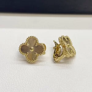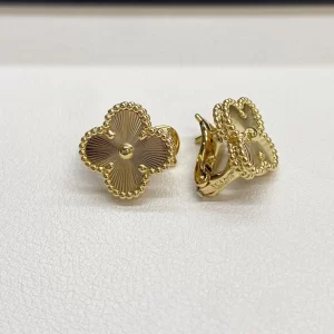 The Van Cleef Alhambra Guilloche earrings yellow gold copy are one of Van Cleef & Arpels’ most iconic creations. Inspired by the clover motif, these earrings symbolize luck, harmony, and elegance, making them a beloved choice for generations.